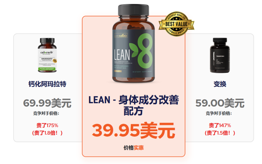 LiveGood 研发出全球首款 LEAN 体组成优化配方,一次解决四大关键问题,让你瘦得健康丶瘦得长久: