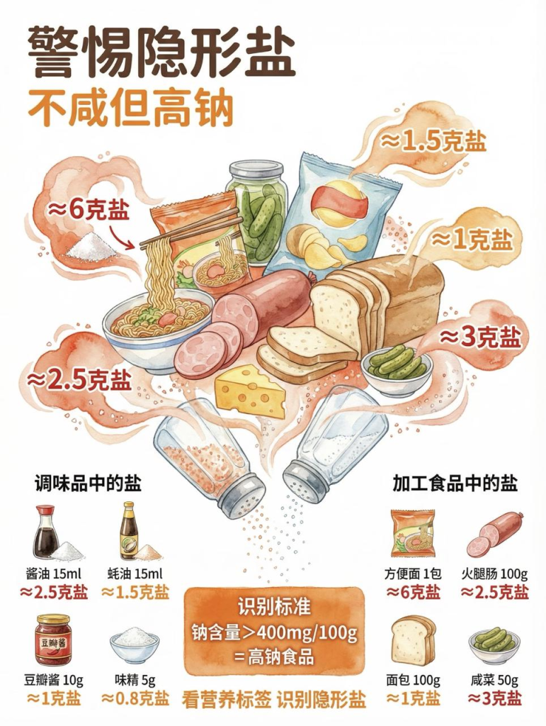 之所以会出现这种情况,很大一部分原因,就藏在日常饮食里 那些看不见的“隐形盐”中